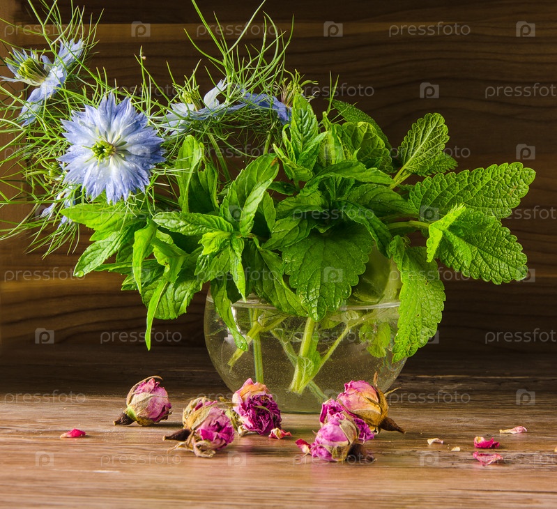 Бутоны роз и мята