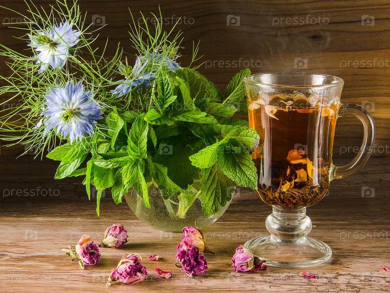 Бутон розы и чай