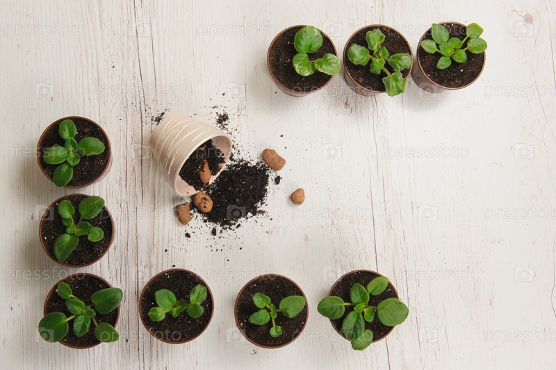 Ростки комнатных растений в горшках