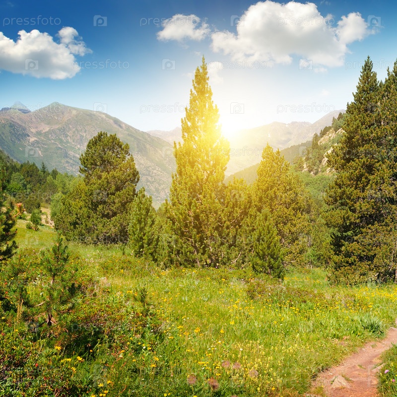 Красивый горный пейзаж и восход солнца