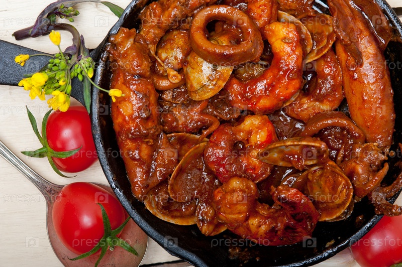 Морепродукты на сковороде