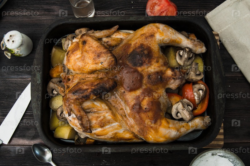 Жареная курица с грибами и овощами