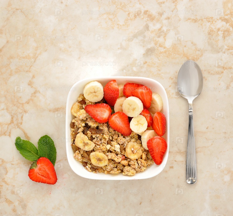 Мюсли с клубникой и бананами