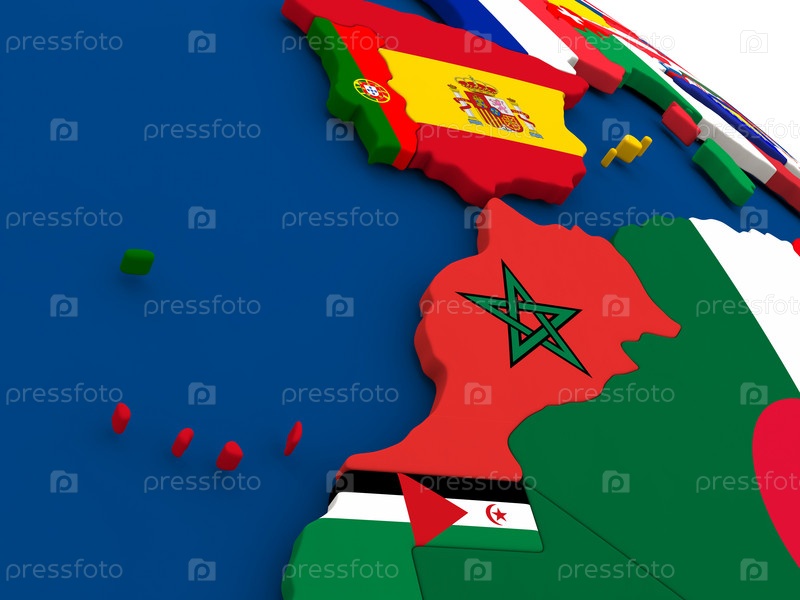 Марокко на глобусе с флагами