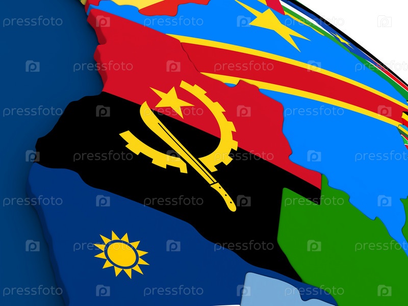 Ангола на глобусе с флагами