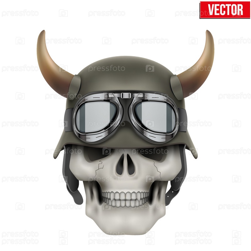 Человеческий череп в каске с рогами