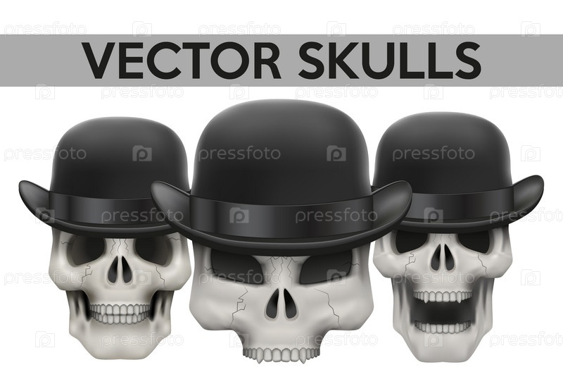 Набор человеческих черепов в котелках