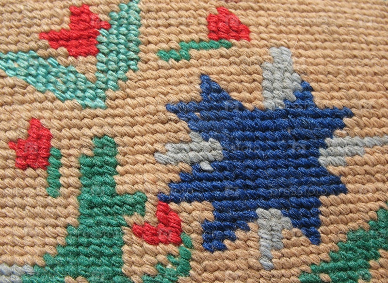 Вышитая гладью ткань, ручная работа