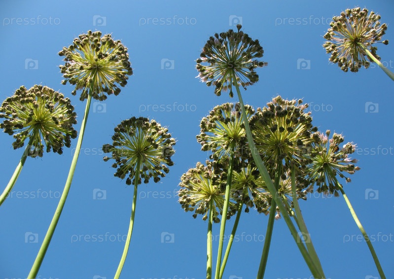 Соцветия лука на фоне голубого неба