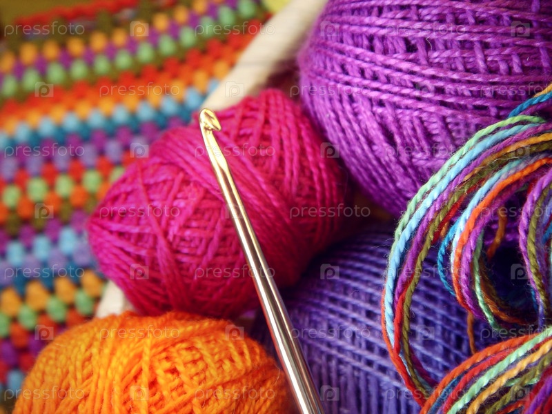 Крючок и цветная пряжа