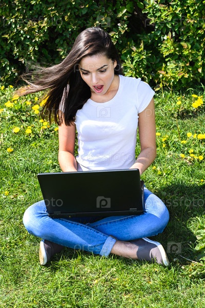 В парке с ноутбуком
