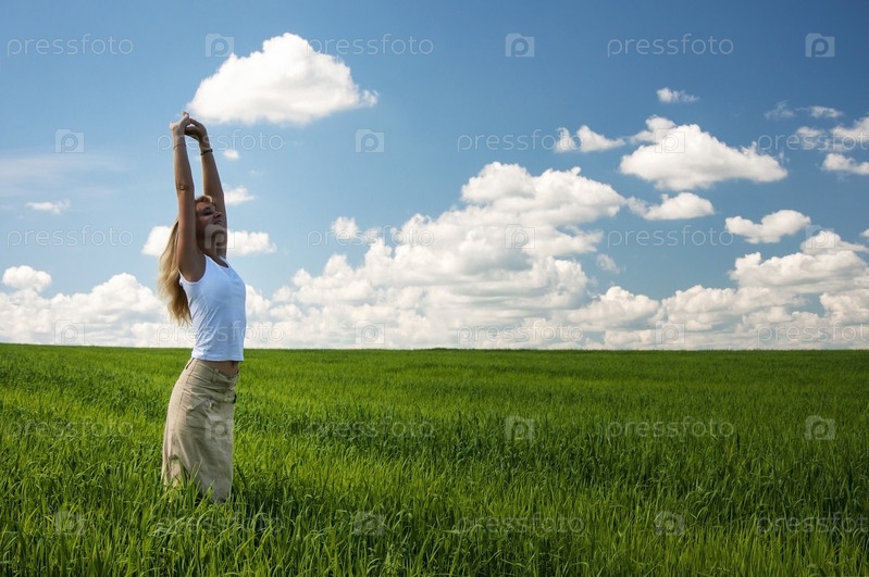 Счастливая девушка в поле