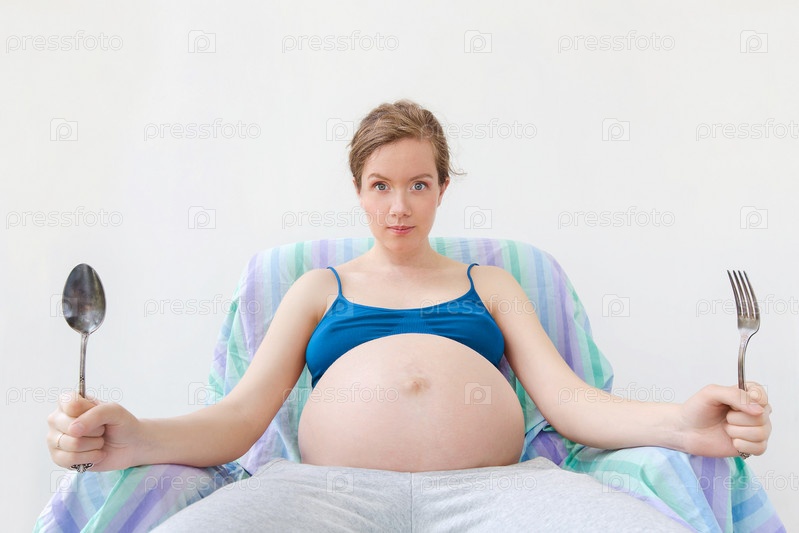Очень голодная беременная женщина