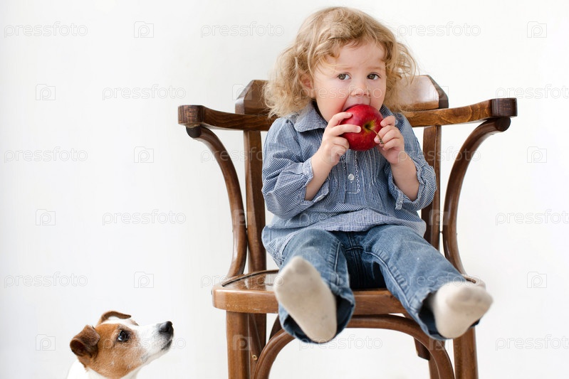 Ребенок ест яблоко