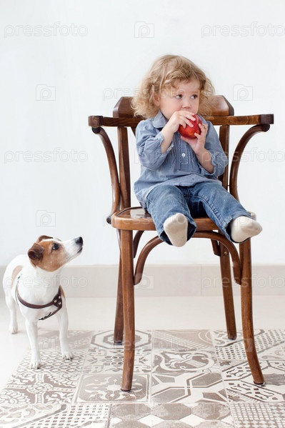 Маленький ребенок с собакой