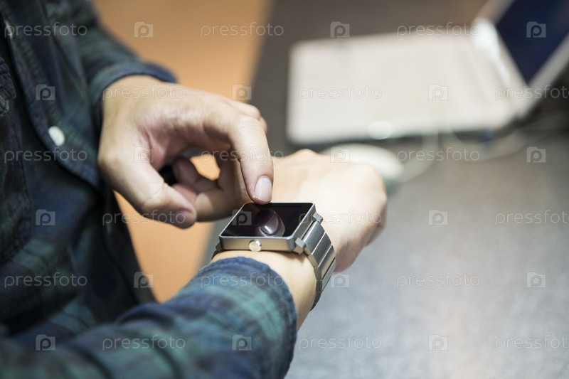 Мужчина смотрит на часы