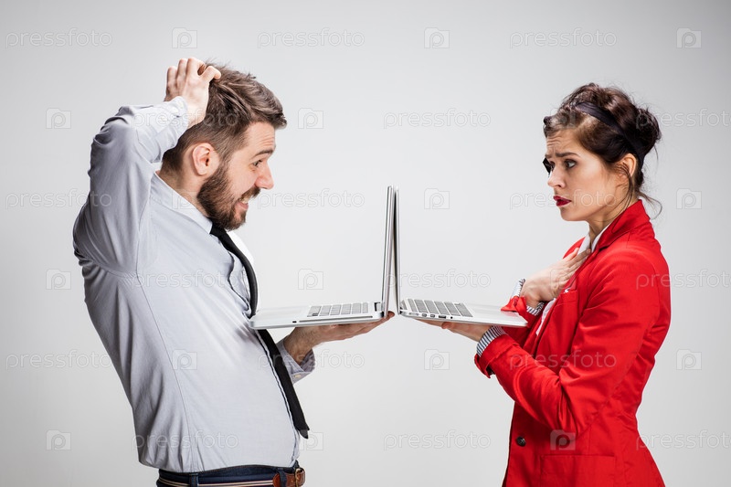 Эмоциональная пара с ноутбуками