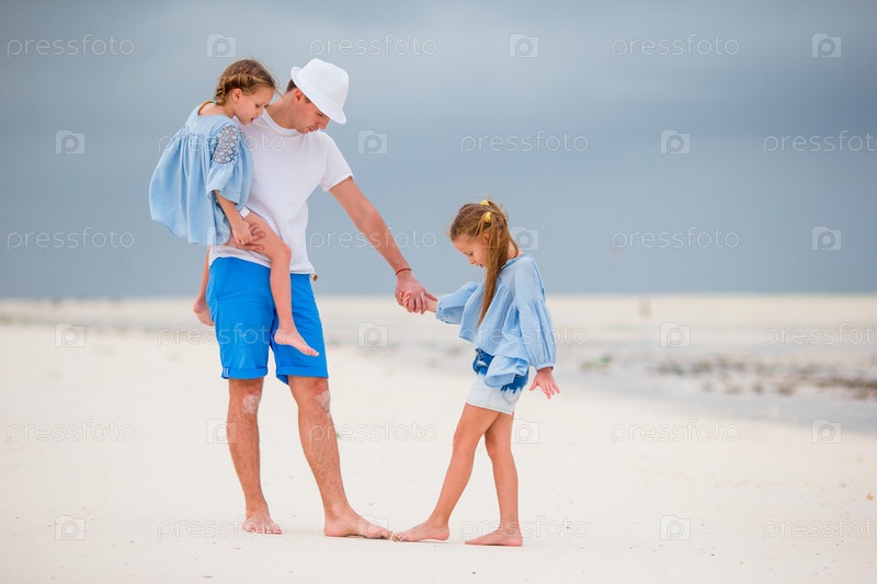 Отец с дочерьми на пляже