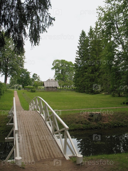 Горбатый деревянный мостик в парке усадьбы Михайловское. Музей-заповедник А.С.Пушкина