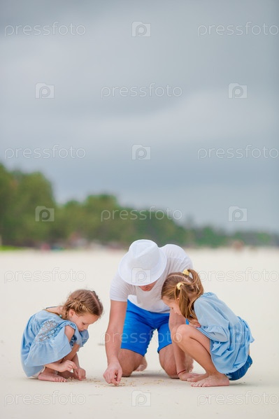 Отец с дочерьми на пляже