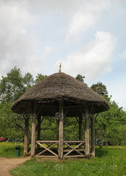 Деревянная беседка в парке усадьбы Михайловское. Музей-заповедник А.С.Пушкина