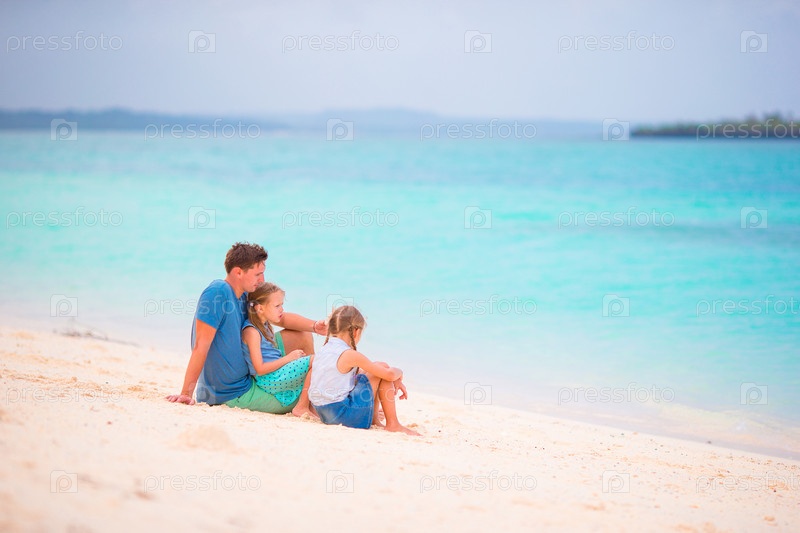 Отец с дочерьми на пляже
