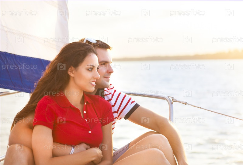 Молодая пара на парусной лодке