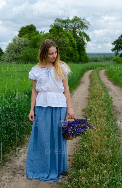 Молодая женщина с корзиной цветов