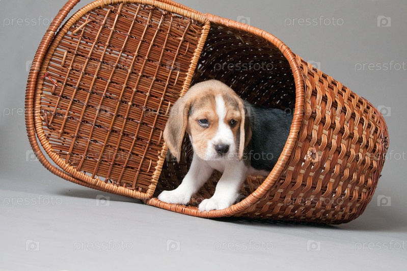 Щенок Бигля в корзине