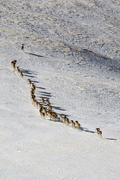 Стадо баранов Марко Поло в горах Тянь-Шаня
