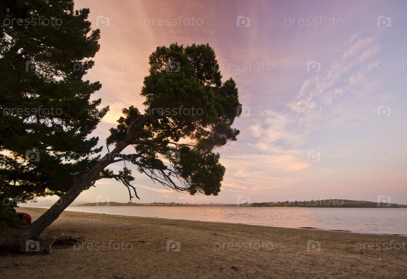 Пурпурный закат на пляже