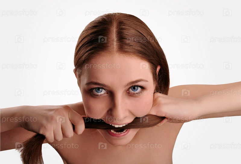 Красивая девушка с длинными волосами на белом фоне