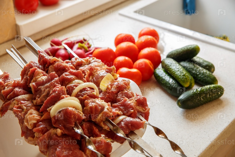 Сырое мясо с овощами