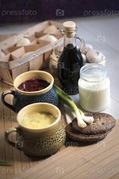 Сырный суп и борщ со сметаной