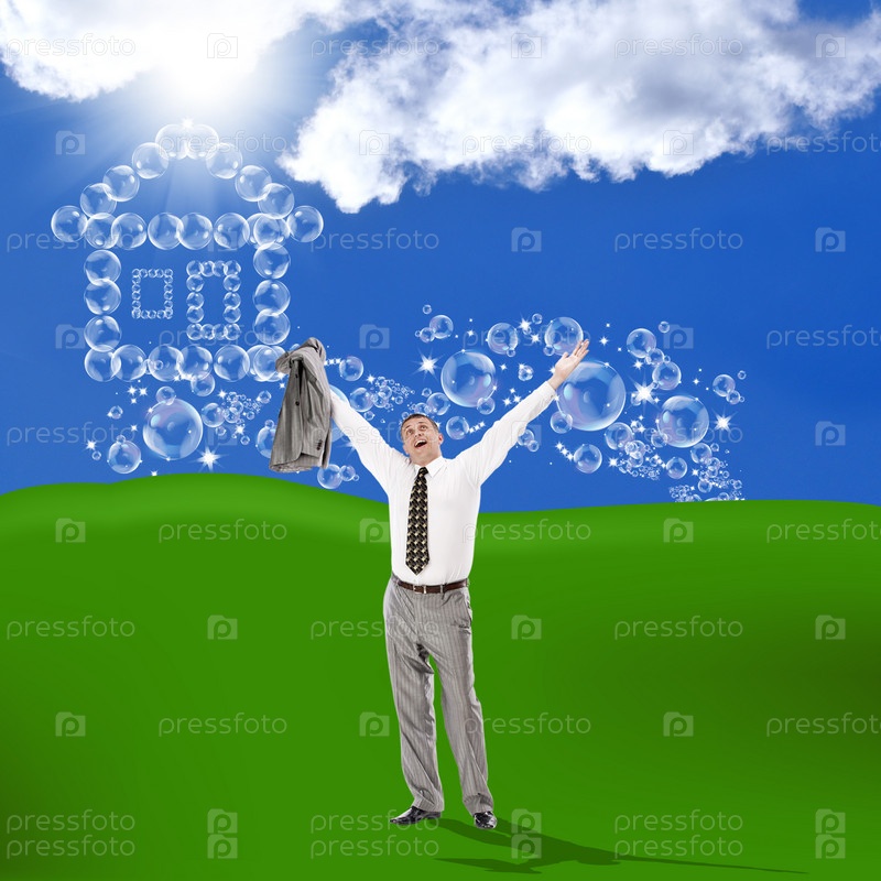 Розовые мыльные мечты бизнесмена о счастливой жизни и благополучии
