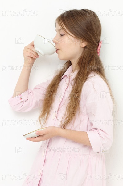 Очаровательная девочка пьет чай