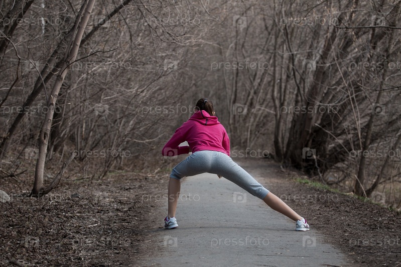 Молодая красивая девушка занимается спортом в парке