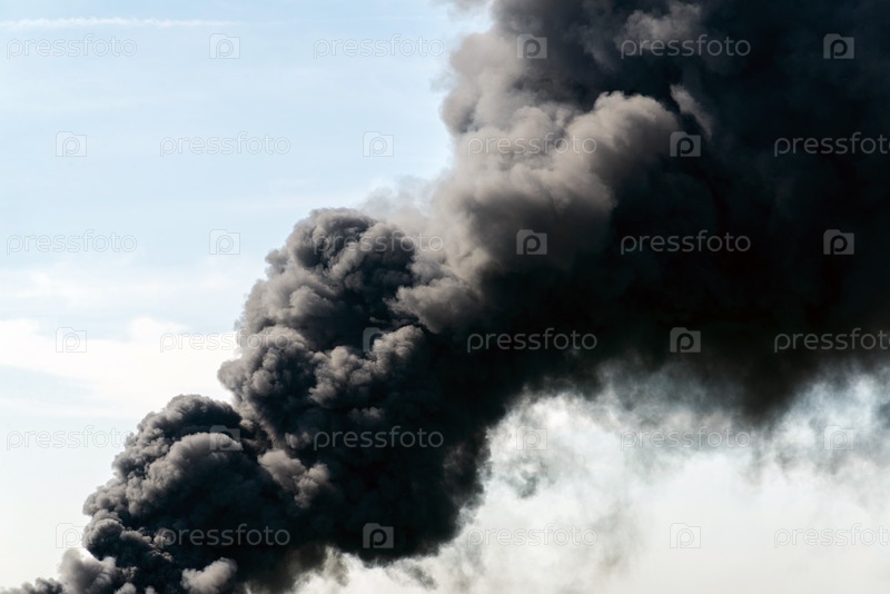 Много черного дыма от пожара