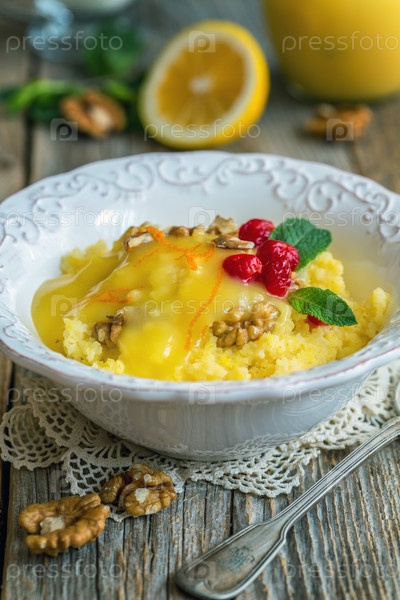 Пшенная каша с орехами и лимонным кремом