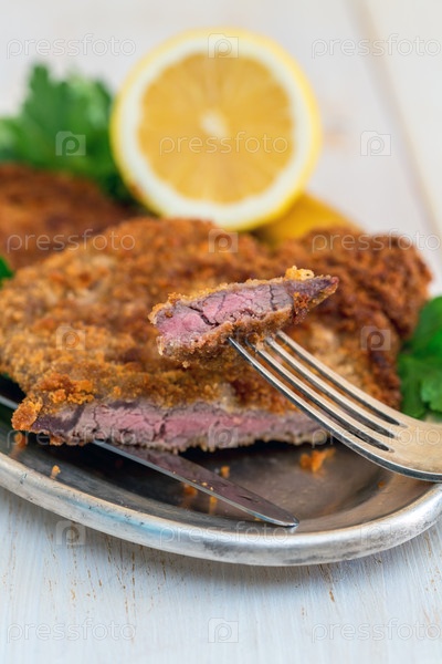 Шницель из говядины с лимоном