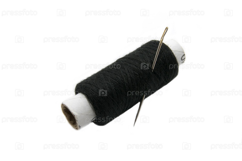 Моток черных ниток с иголкой