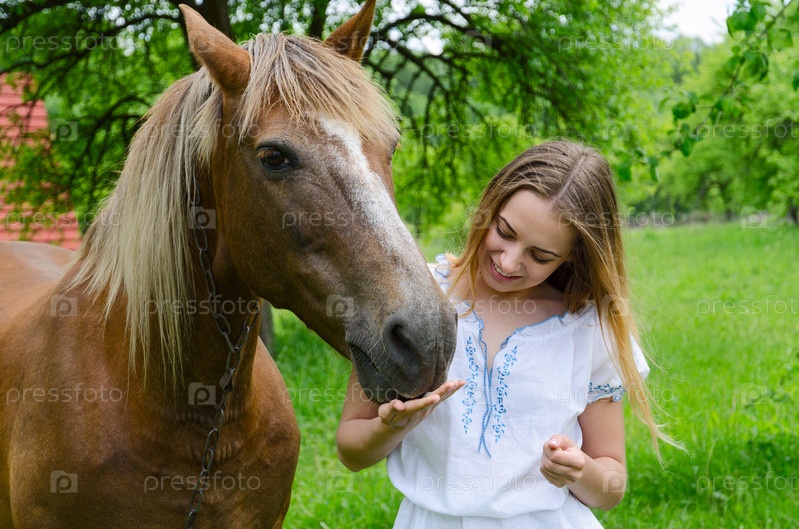Молодая красивая женщина с лошадью