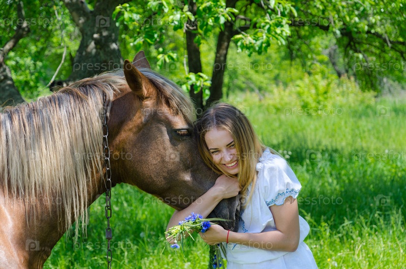 Молодая красивая женщина с лошадью
