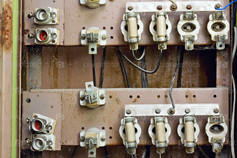 Старый коммутатор с предохранителями на заднем плане