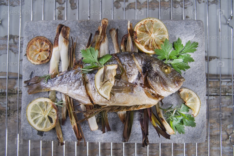 Морской лещ, запеченный в духовке
