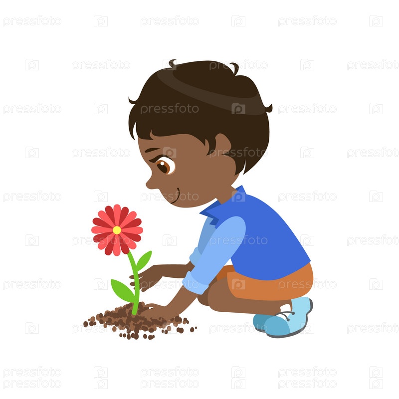 Мальчик высаживает цветок