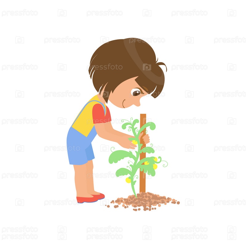 Девочка заботится о растении