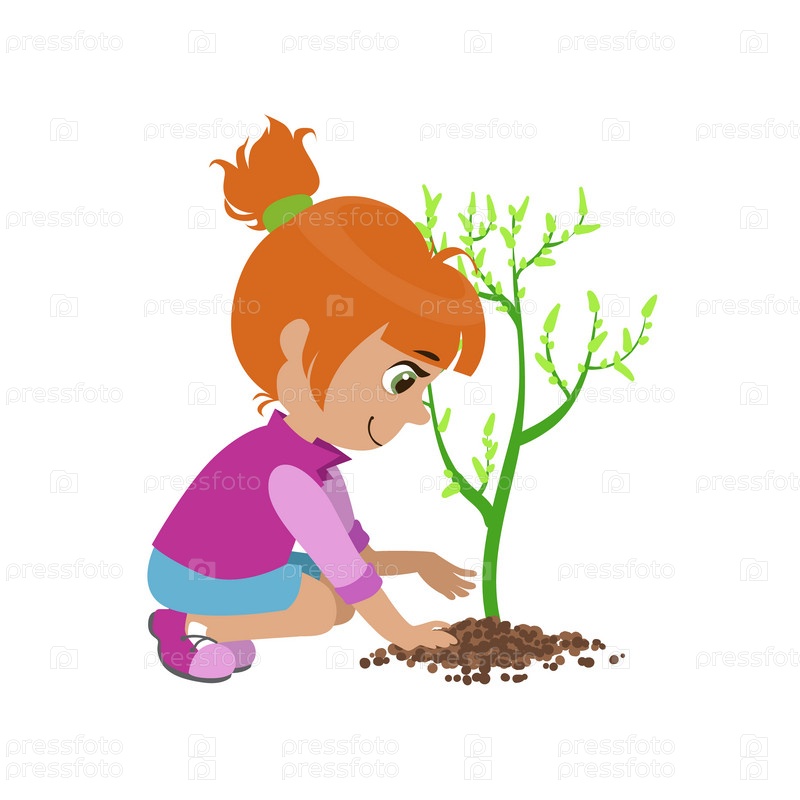 Девочка заботится о растении
