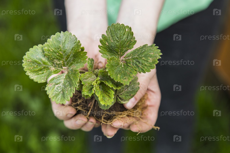 Куст клубники в руках