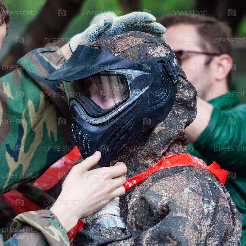 Девушка в камуфляже перед игрой в пейнтбол